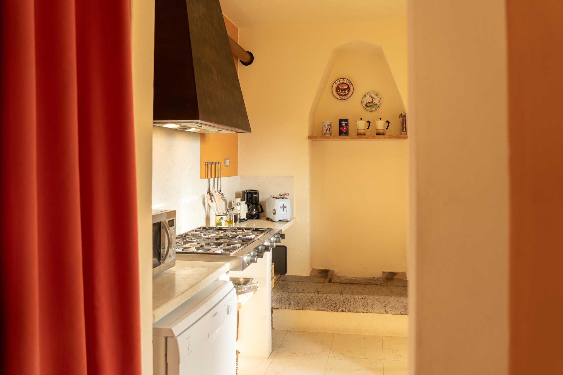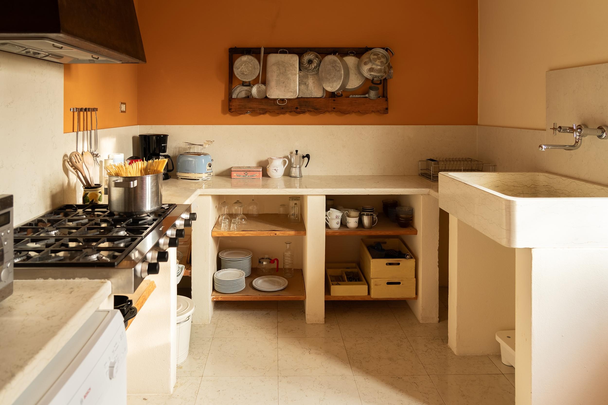 The taverna retains the features of traditional rustic architecture and is available to guests as a shared space within the property.